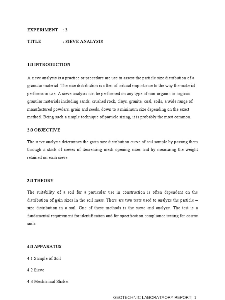 Sieve analysis lab report example. One of the physical properties of aggregate that influence the property of concrete is the grading of. INTRODUCTION Aggregate is one of the basic constituents of concrete. Sieve Analysis Lab Report Tech Writing Lab Report Dr.